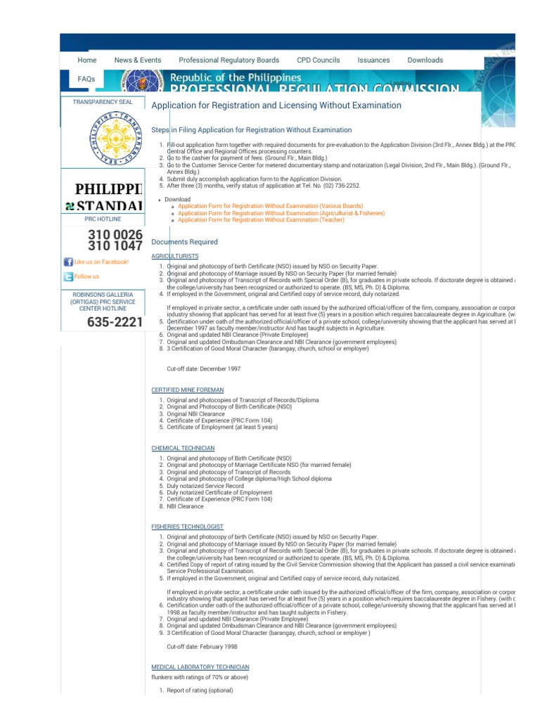 Prc Official Website Registration Licensing Services Application For Registration Licensing Without Exam Pdf Professional Certification Identity Document