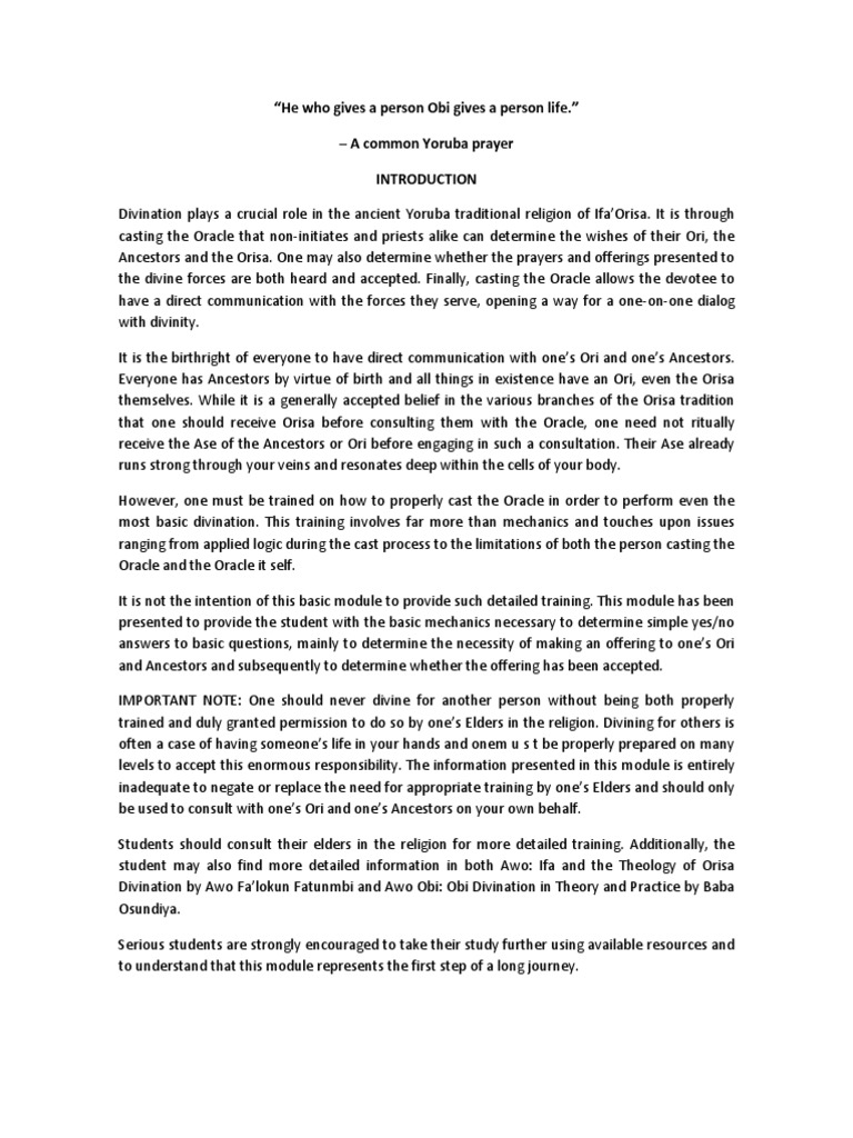 Obi Abata Pdf Divination Religion And Belief